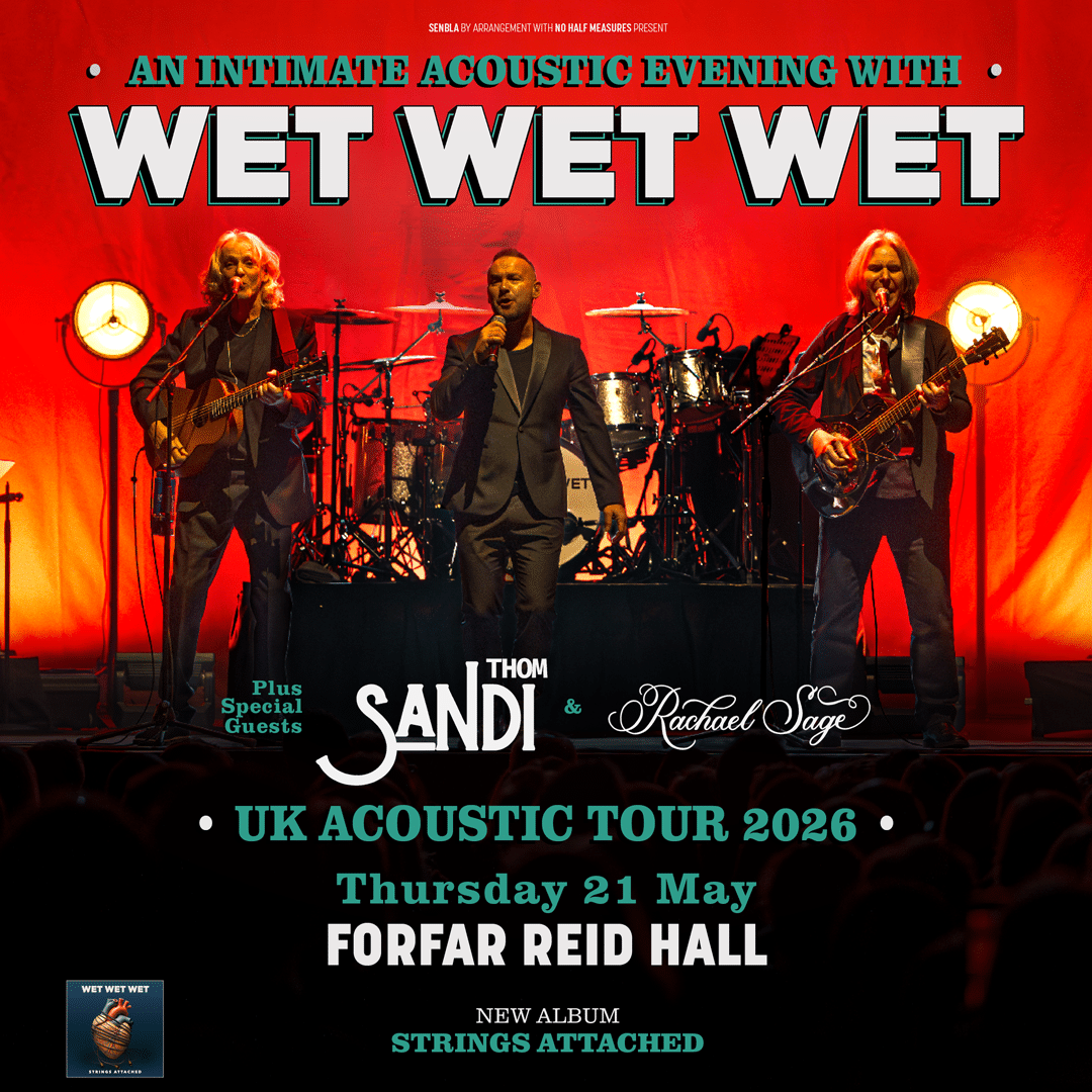 ‘An Intimate Acoustic Evening with Wet Wet Wet’ will see founding member Graeme Clark, long -standing guitarist Graeme Duffin, and lead singer Kevin Simm, who joined the band in 2018, perform a full set of reworked Wet Wet Wet classics, with the odd story and anecdote from the band’s history thrown in for good measure.